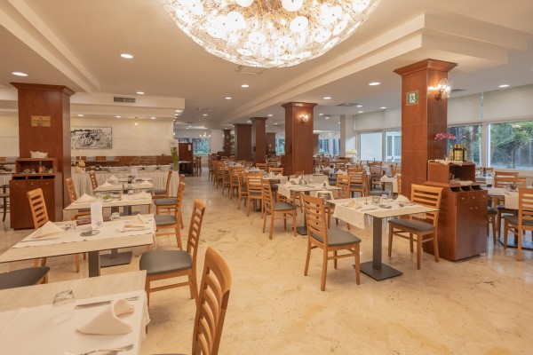 The restaurant of the Hotel Le Palme has a main hall of about 350 sq.m. and 220 seats, as well as a round hall of about 260 sq.m. and 180 seats.